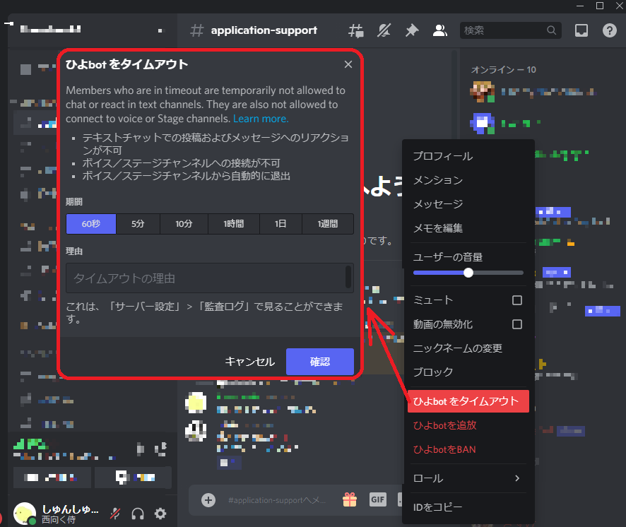 これに対して Discord に最近追加された「タイムアウト」という機能が効果を発揮しそうである。